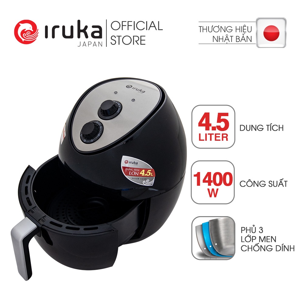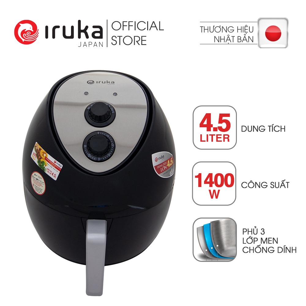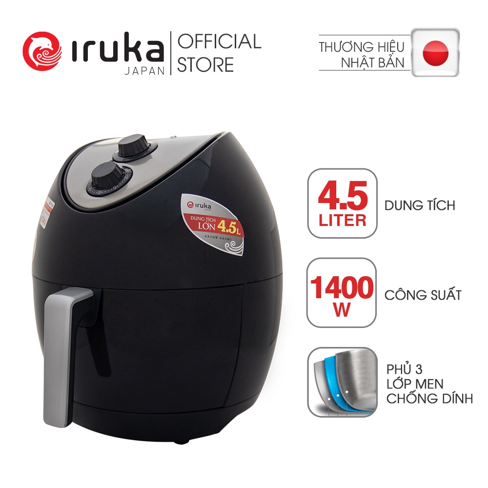 [Mã ELHADEV giảm 4% đơn 300K] Nồi chiên không dầu Iruka I68 Đen 4.5L - Hàng chính hãng