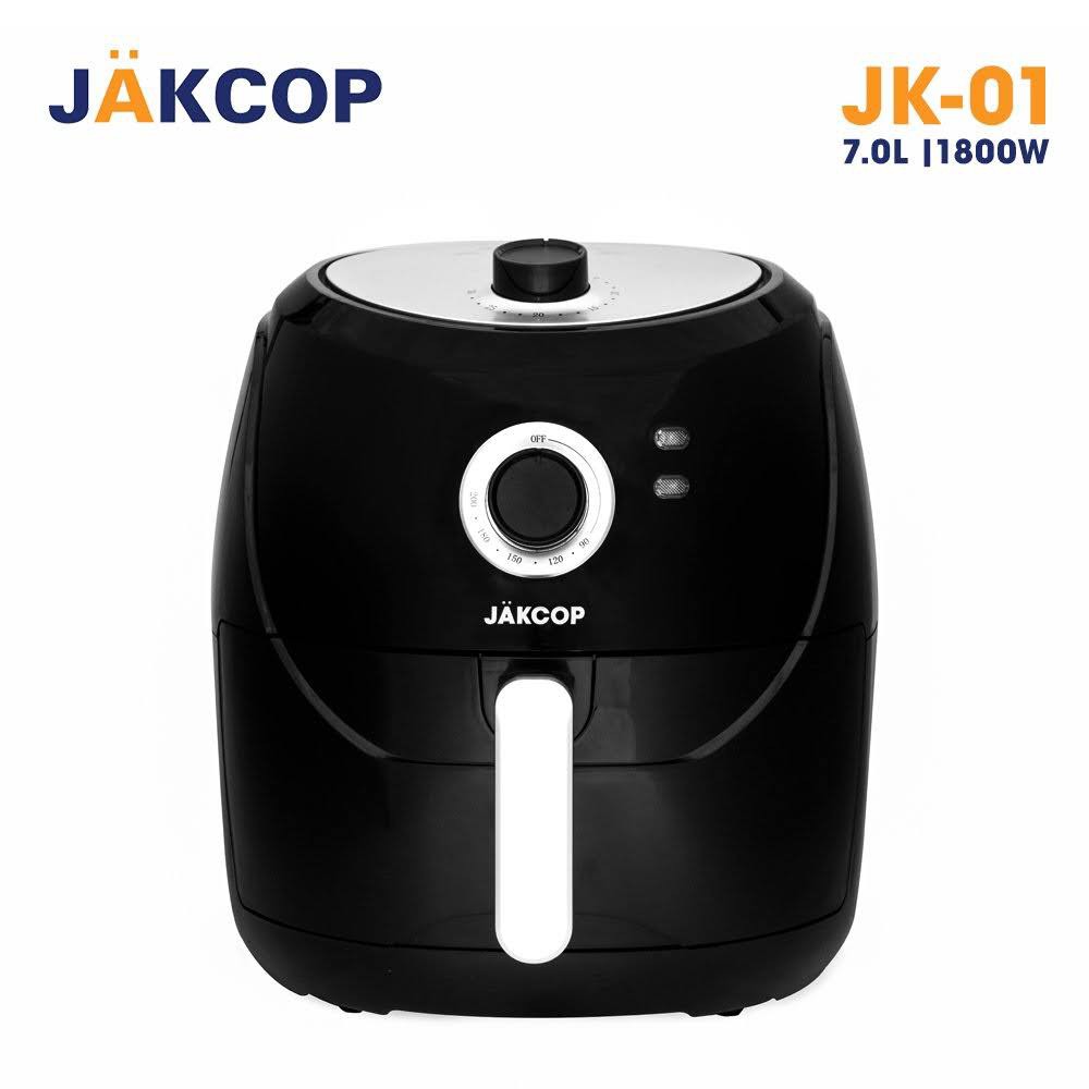 Nồi chiên không dầu Jakcop JK-01 làm chín thực phẩm bằng cách đốt nóng thanh nhiệt, sau đó bộ phận quạt dưới khay chiên thổi khí nóng luân chuyển đều khắp bề mặt thực phẩm giúp thức ăn chín nhanh trong 15 - 30 phút mà không cần dùng đến dầu mỡ.