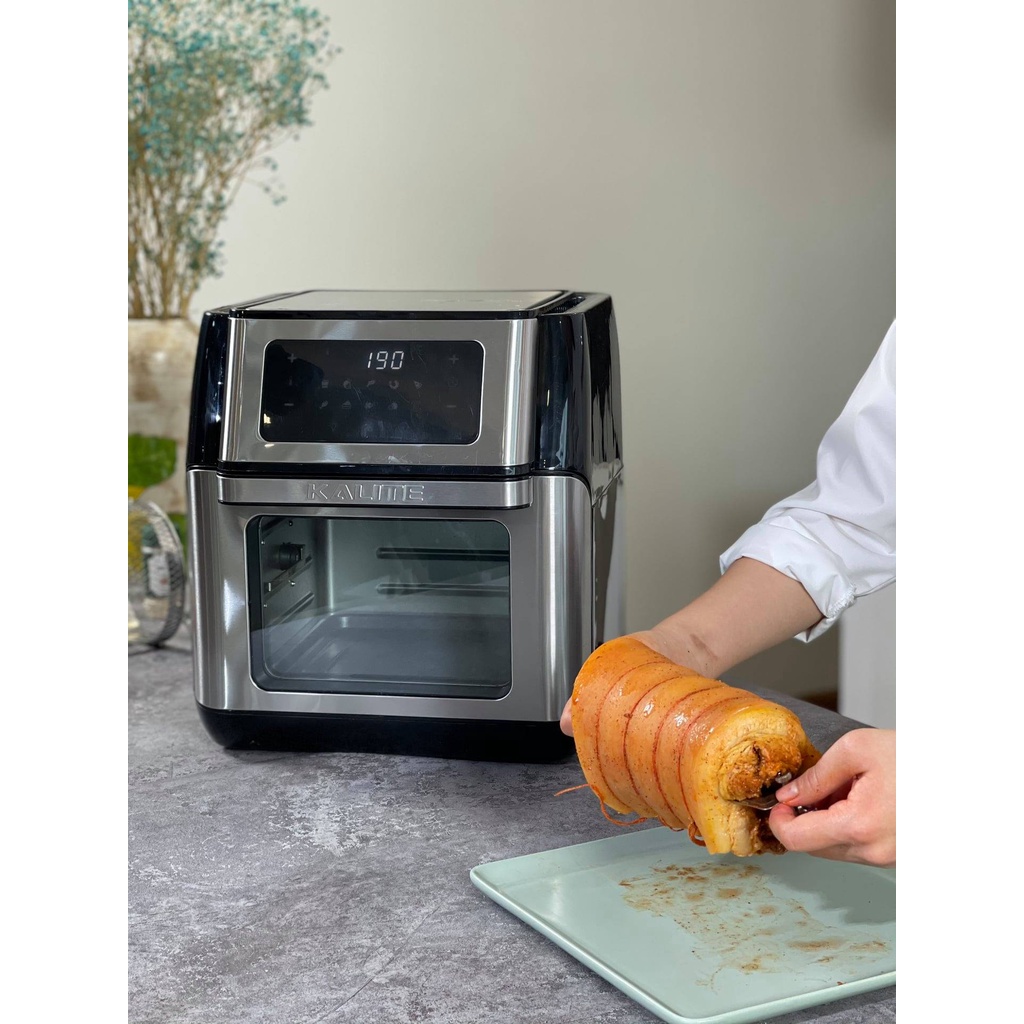 ☛ Nồi chiên không dầu kiêm lò nướng Kalite Q10 có dung tích lớn 10 l, phần khoang chiên rộng rãi hoàn toàn có thể quay gà, vịt nguyên con hay chế biến nhiều loại thực phẩm cùng một lúc. Không chỉ đáp ứng bữa ăn cho cả gia đình mà còn phục vụ đủ nhu cầu trong các buổi party với bạn bè.