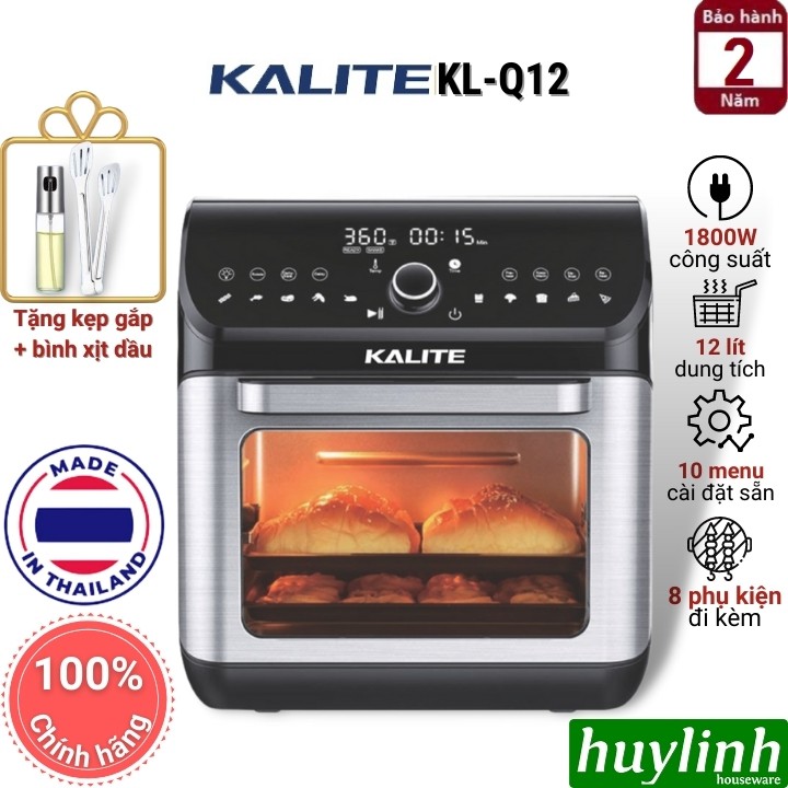 Nồi chiên không dầu Kalite KL-Q12 với dung tích lớn 12 lít, có công suất 1800W sản xuất tại Thái Lan với khả năng chiên nướng thực phẩm siêu đỉnh cùng nhiều phụ kiện đi kèmHuy Linh phân phối và bảo hành chính hãng tại Kalite Việt Nam