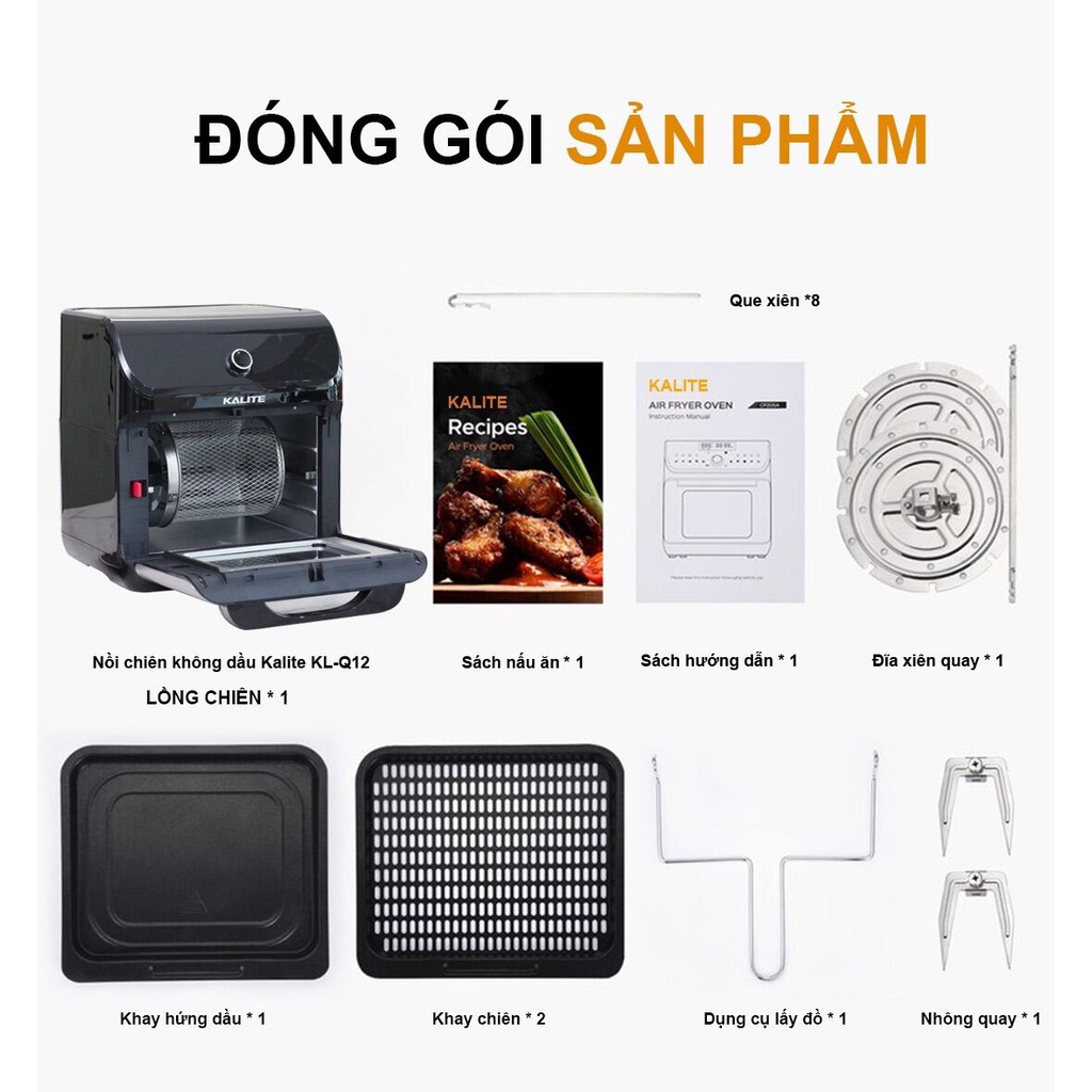 Giới thiệu [Mã ELHADEV giảm 4% đơn 300K] Nồi chiên không dầu Kalite KL 1200 dung tích 12L công suất 1800W ướp gà nướng nguyên con