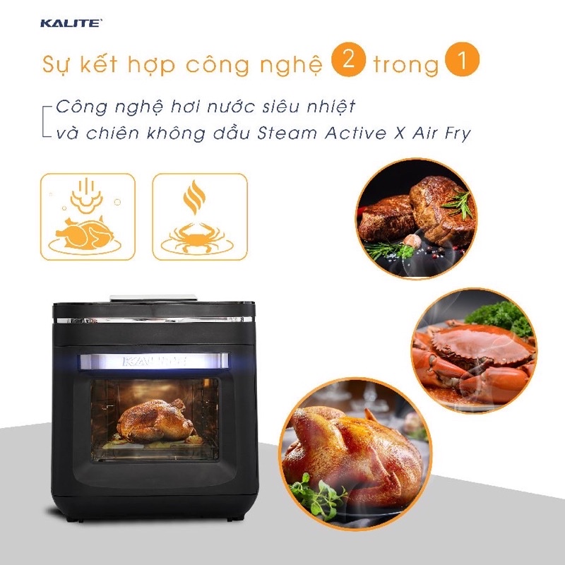 - Nhờ sự kết hợp độc đáo và tưởng như không thể này, Kalite Steam X vừa có khả năng chiên, nướng đỉnh cao, vừa có thể hấp đồ ăn mềm mọng và giữ trọn vẹn dinh dưỡng trong thực phẩm.