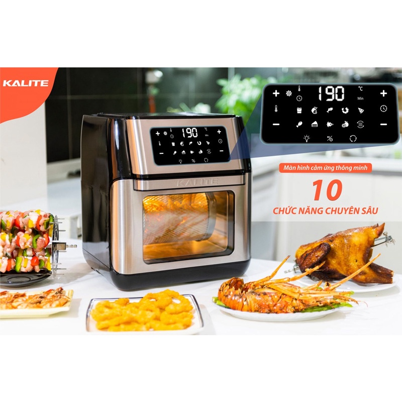 Giới thiệu Nồi chiên không dầu Kalite Q10 10L 1800W hàng chính hãng bảo hành 12 tháng (tặng kèm xịt dầu và chổi quết silicone)
