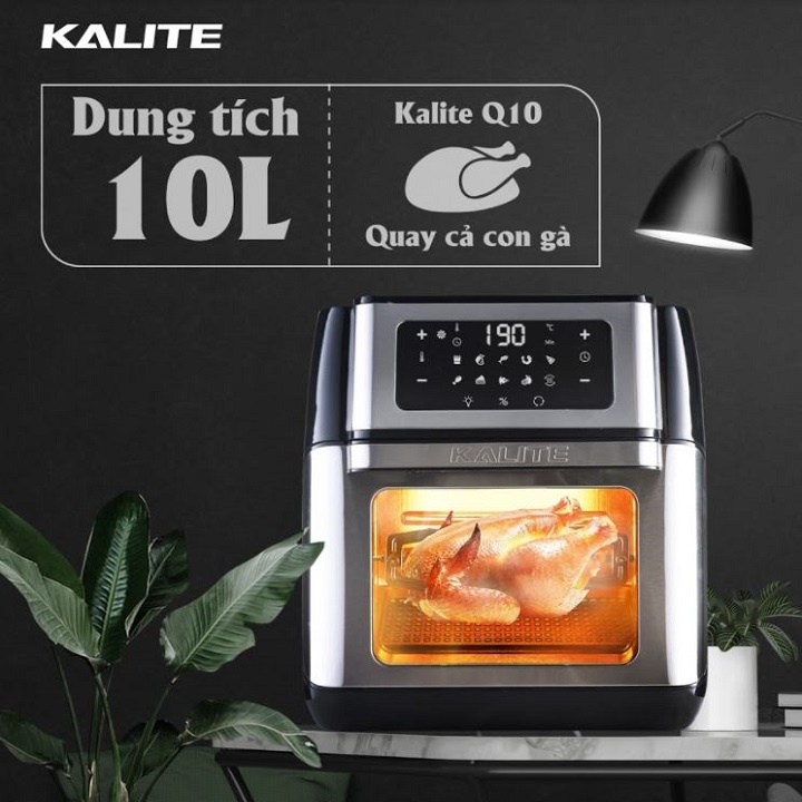 Nồi chiên không dầu Kalite Q10 công suất 1800W dung tích 10L hàng chính hãngDung tích 10L, thoải mái quay cả con gà.