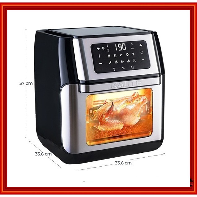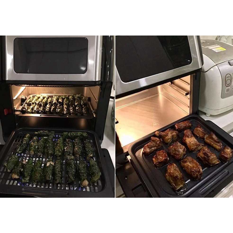- Dung tích 12 lít siêu khủng có thể nướng chiên gà nguyên con, 20 cánh gà 1 lúc, 20cm pizza hay 800gr khoai tây