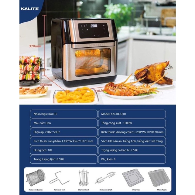 Nồi Chiên Không Dầu Kalite Q10 , THAY THẾ 9 LOẠI THIẾT BỊ,(lò nướng , nồi chiên , máy nướng Pizza, máy nướng bánh mì, máy làm bỏng, máy ủ sửa, máy sấy hoa quả, nồi chiên sâu, lò vi sóng..)