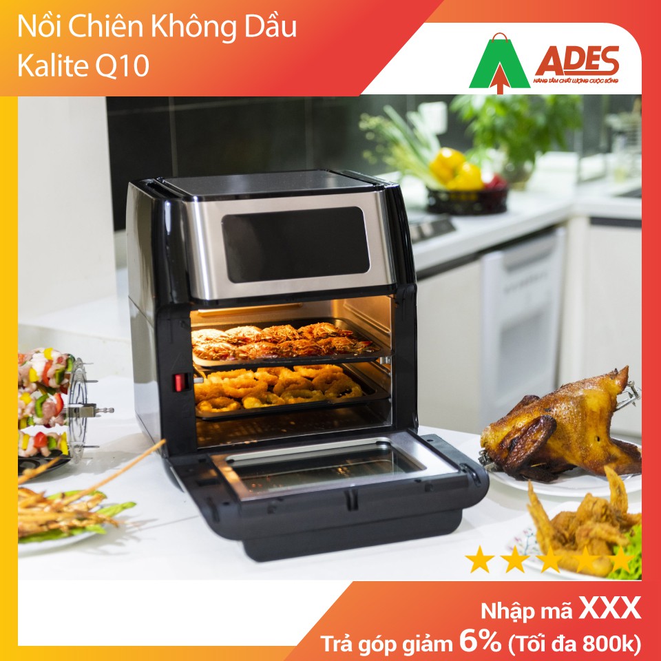 – Nồi chiên không dầu thế hệ mới Kalite Q10 là sự đột phá của công nghệ với sự kết hợp giữa chiên không dầu và lò nướng mang đến sự tiện dụng cho khách hàng. Ưu điểm nổi bật là dễ dàng quan sát thức ăn trong quá trình chế biến, tích hợp chức năng nướng quay hoàn hảo. Kalite Q10 được thiết kế tinh tế với màn hình cảm ứng LCD với 10 chức năng chuyên sâu: Chiên khoai tây, Nướng thịt, Nướng cá, Nướng tôm, Nướng Pizza, Nướng Đùi gà, Nướng bánh, Nướng Gà quay nguyên con, Sấy hoa quả, Rã đông thực phẩm.