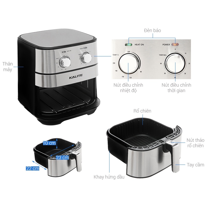 Giới thiệu Nồi chiên không dầu Kalite Q5, công suất 1700W, dung tích 5,5L