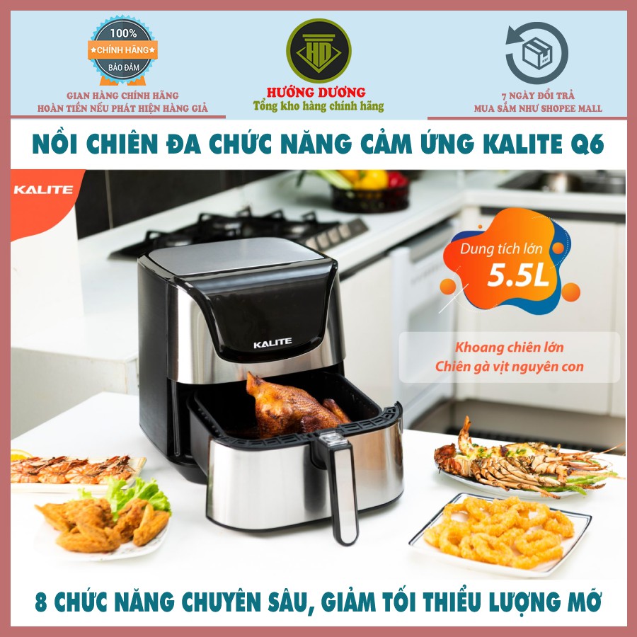 Thiết Bị Điện Gia Dụng > Đồ gia dụng nhà bếp > Nồi chiên không dầu || Nồi chiên không dầu Kalite Q6, công suất 1700W, dung tích 5,5L, bảng điều khiển điện tửCòn hàng