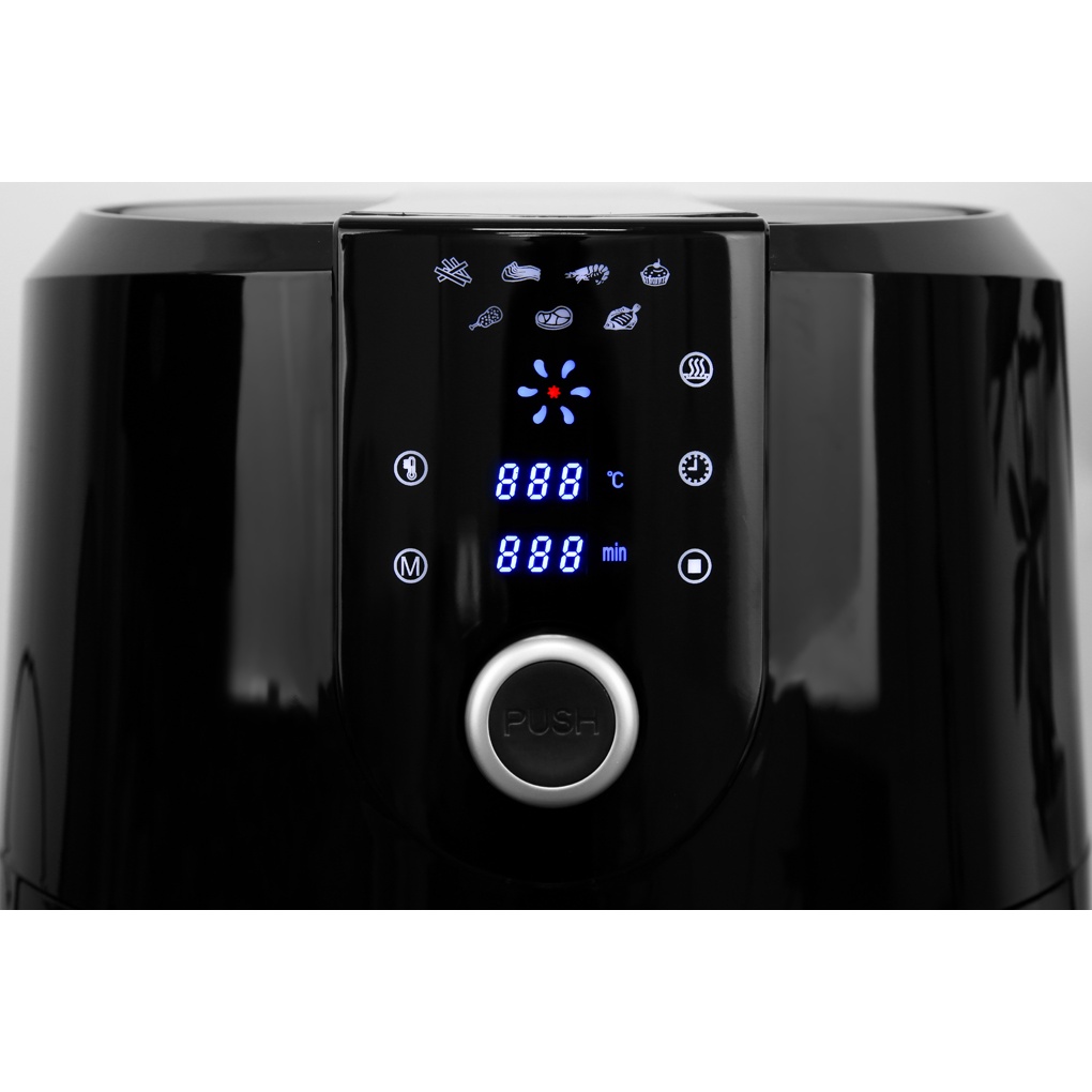 Bảng điều khiển cảm ứng có màn hình hiển thị với chỉ dẫn đơn giản, rõ ràng cho người dùng tùy chỉnh nhiệt độ từ 80 - 200 độ C. 7 chức năng nấu gồm khoai tây, tôm, sườn, đùi gà, bánh ngọt, cá, thịt, hẹn giờ nấu tối đa 60 phút dễ dàng.
