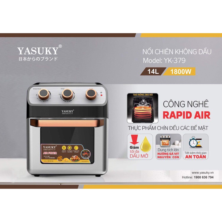Nồi Chiên Không Dầu Kết Hợp Lò Nướng Yasuky 14L YK-379