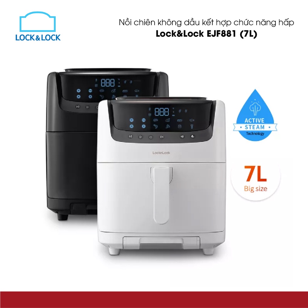 Nồi chiên không dầu kết hợp chức năng hấp Lock&Lock EJF881 (Đen/Trắng) - Dung tích lớn 7L - Chiên/Nướng/Hấp