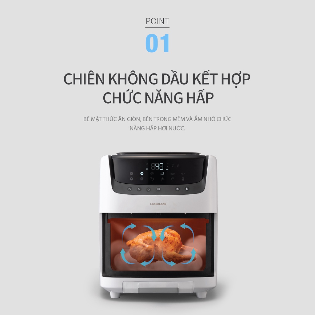 Giới thiệu Nồi chiên không dầu kết hợp chức năng hấp Lock&Lock EJF881 (Đen/Trắng) - Dung tích lớn 7L - Chiên/Nướng/Hấp