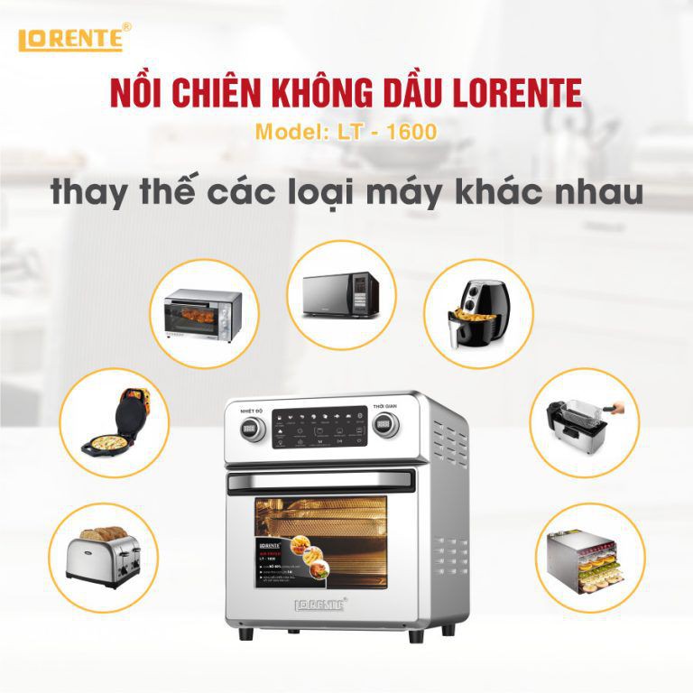 Nồi Chiên Không Dầu Kiêm Lò Nướng Đa Năng Cao cấp 16 Lít - Lorente LT-1600 - Bếp Chiên Không Khí BH 12 tháng