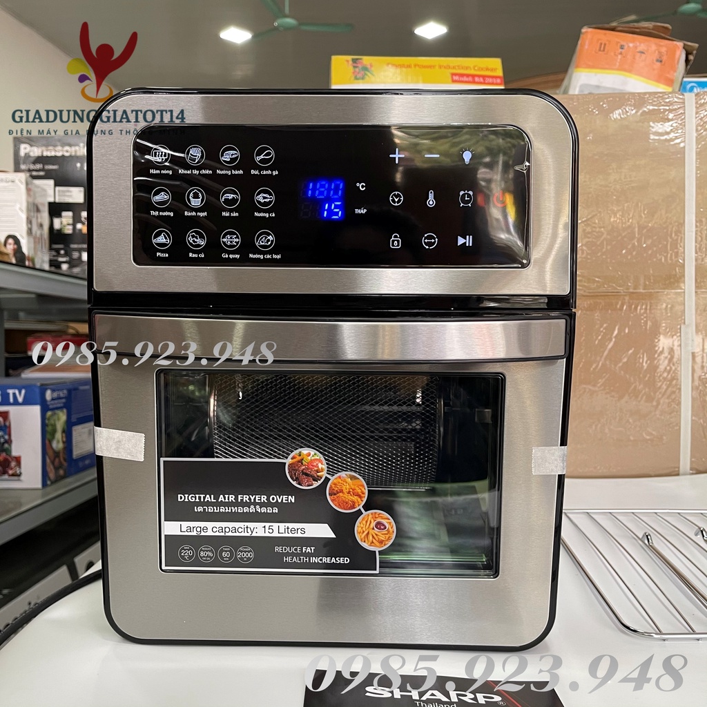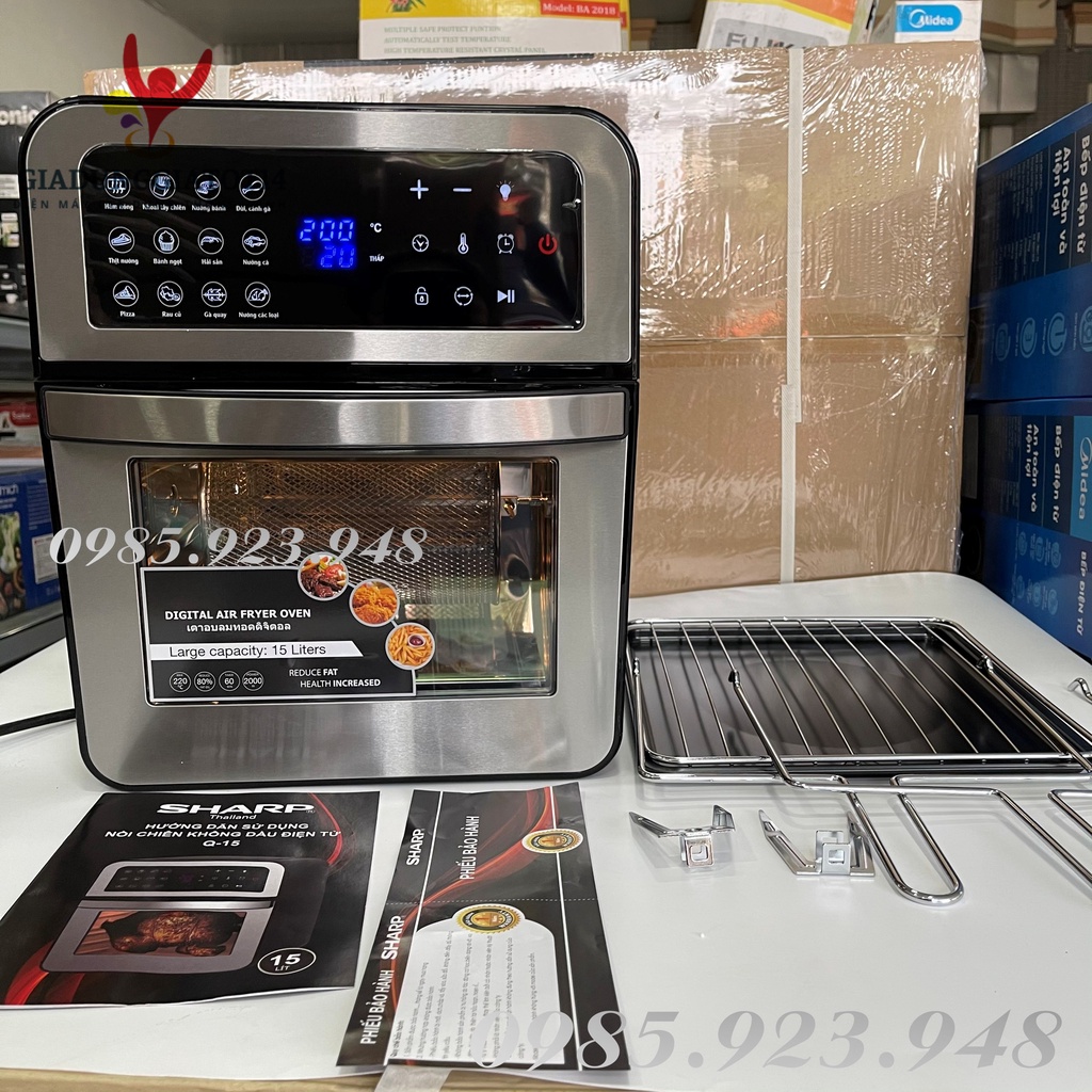 Nồi Chiên Không Dầu kiêm Lò chiên Sharp Q15 - 15 Lít {màn hình Cảm ứng} (New2022) - Dung Tích Siêu Lớn, bảo hành 12tháng