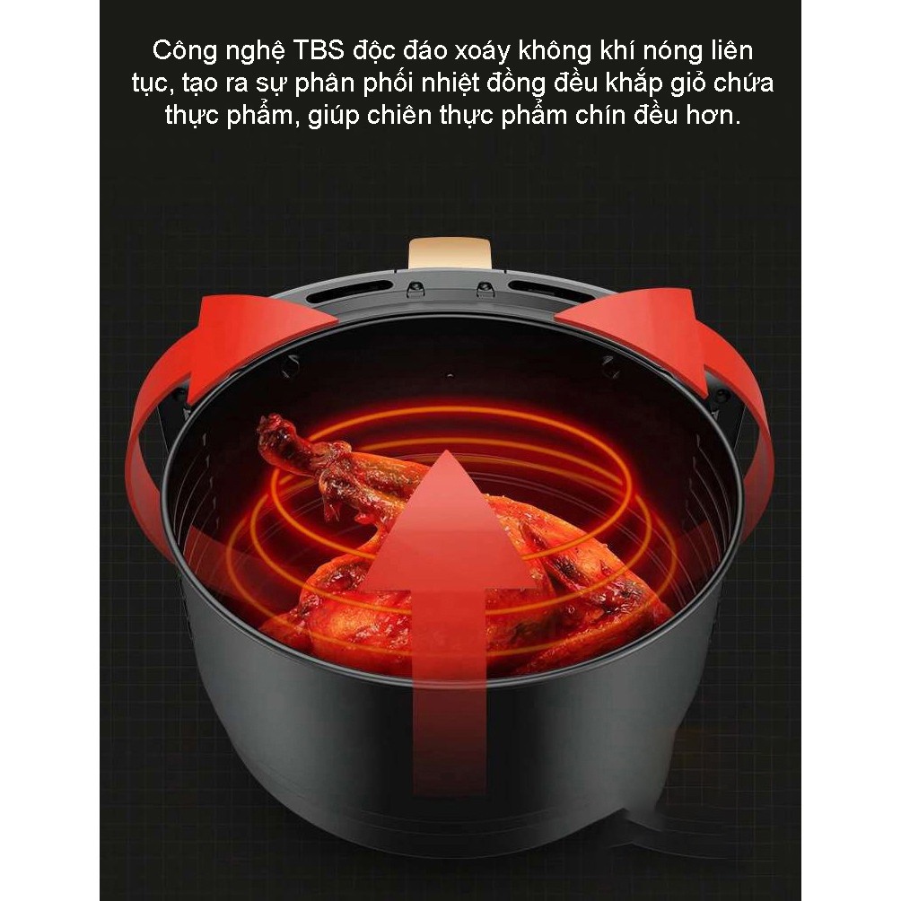 ✅TỎA NHIỆT ĐỀU: Đặc biệt trang bị công nghệ TBS độc đáo xoáy không khí nóng liên tục, tạo ra sự phân phối nhiệt đồng đều khắp giỏ chứa thực phẩm, giúp chiên thực phẩm chín đều hơn.