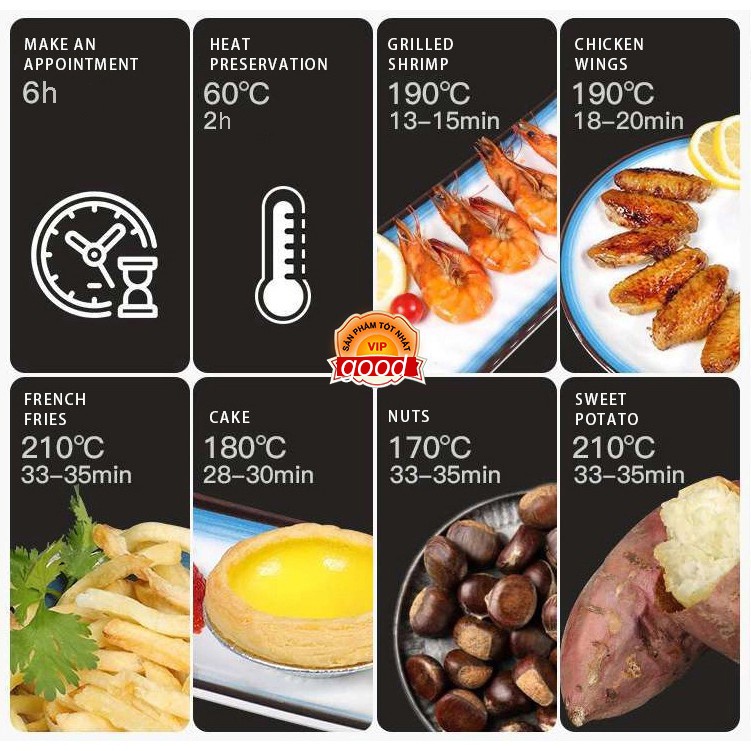 Nồi Chiên Không Dầu Kiểu PHÁP Công Suất Lớn Dung Tích Dung Tích 5 Lít mới 2021✅CHẤT LƯỢNG CAO: Thiết kế cao cấp, hiện đại. Vỏ máy cách nhiệt, chân đế chống trượt, an toàn cho người sử dụng.