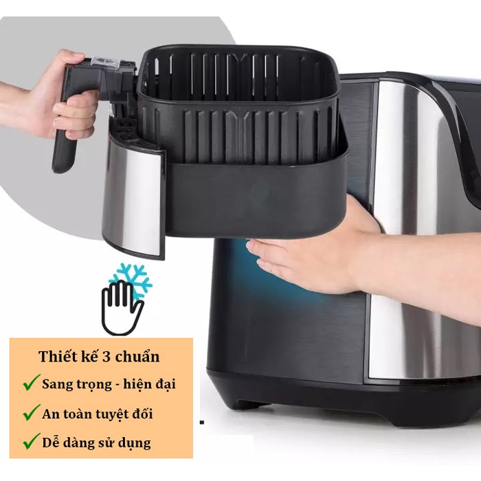 - Thiết kế siêu hiện đại cùng chất liệu vỏ ngoài được làm bằng inox không gỉ kết hợp với công nghệ cool touch cách nhiệt chống nóng vô cùng an toàn.