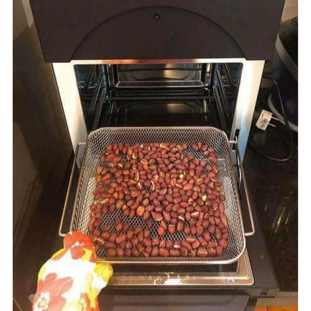 Bộ sản phẩm gồm: 1 nồi chiên, 1 chảo nhỏ giọt, 1 lưới, 1 rổ lưới, 1 xiên, 1 tay cầm, 1 khay nướng chống dính.