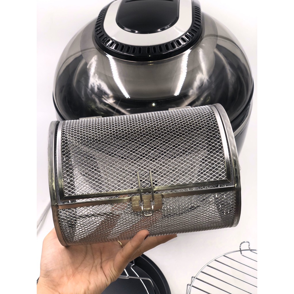 ☑️ Có thêm phụ kiện đi kèm như - khay tròn, phên nướng, xiên thịt và lồng nướng.