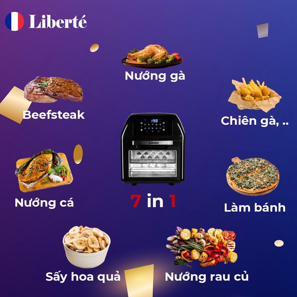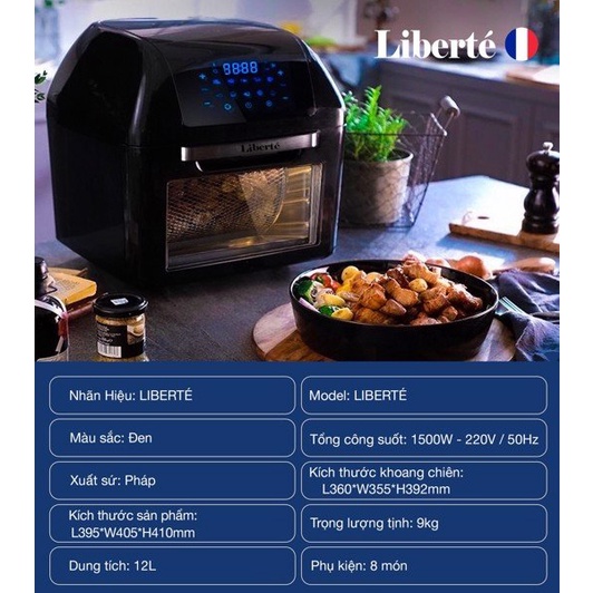Thiết Bị Điện Gia Dụng > Đồ gia dụng nhà bếp > Nồi chiên không dầu || Nồi chiên không dầu Liberté (Pháp) kết hợp lò nướng đa năng dung tích 12L. Hàng chính hãng, BH 3 NămCòn hàng
