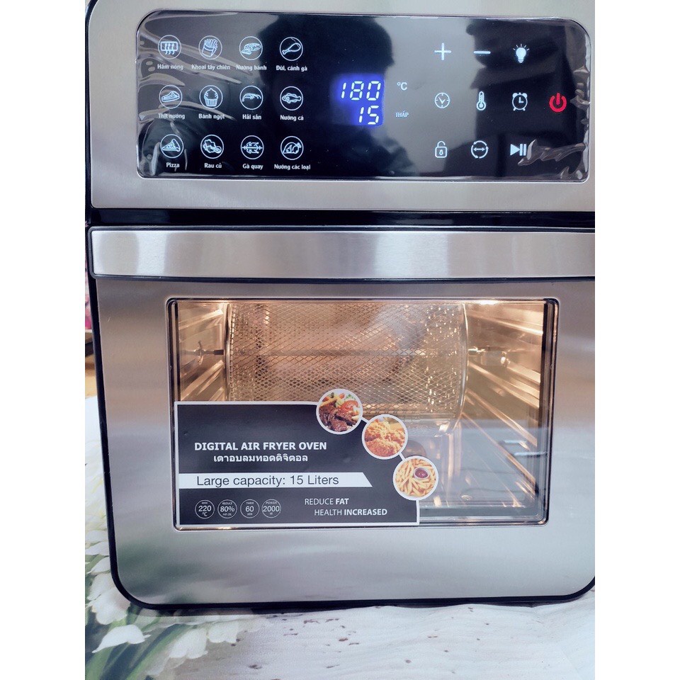 ✅ Thiết kế tinh tế với màn hình cảm ứng LCD với 10 chức năng hoàn hảo: Khoai tây chiên, nương gà, nướng bò, nướng bánh, nướng tôm, sấy hoa quả, nướng xiên quay, đảo nhiệt đối lưu, nướng cá.