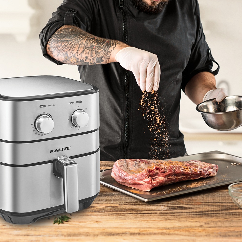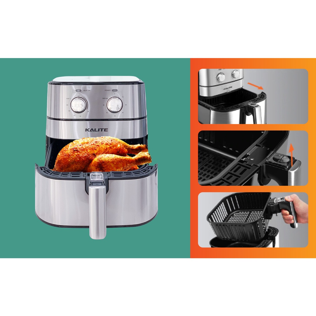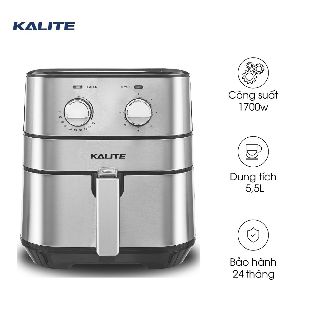 - Ngoài việc thao tác đơn giản, nồi chiên không dầu Kalite Q5 còn có tuổi thọ cao và luôn hoạt động bền bỉ, được đánh giá và dòng nồi chiên dạng cơ chạy khoẻ và được khách hàng yêu thích.