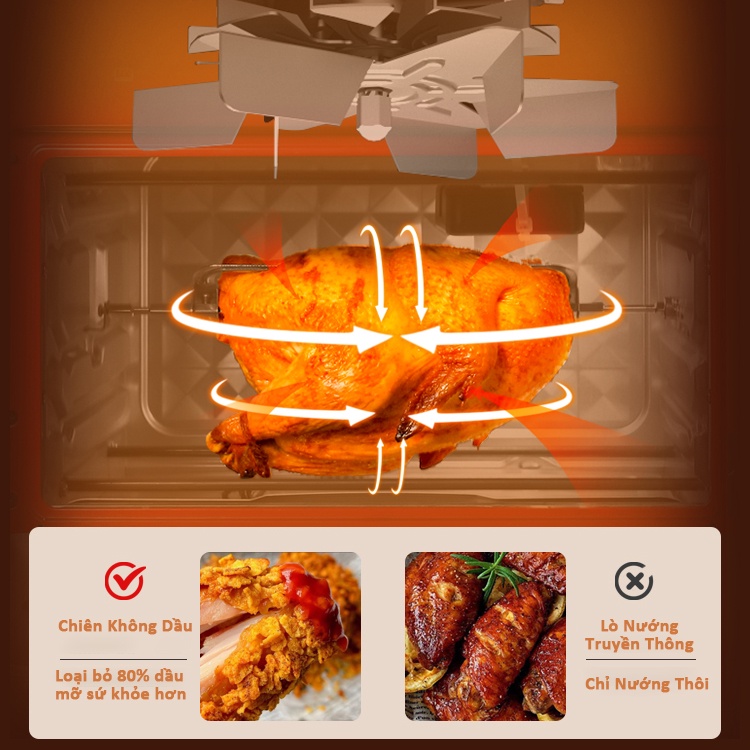 Chế Độ Nồi Chiên Không Dầu: Bật quạt đối lưu nhiệt nóng trong nồi.
