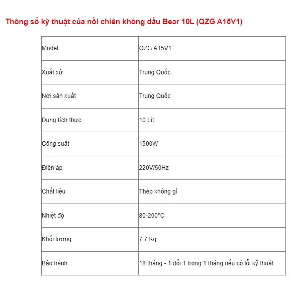 Thương hiệu: Bear | Xem thêm các sản phẩm Nồi chiên của BearMô tả ngắn