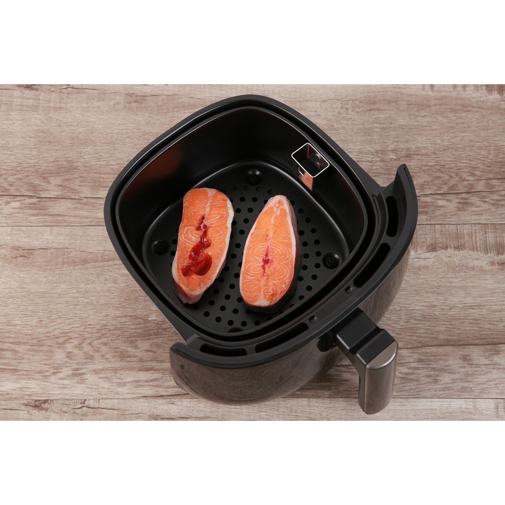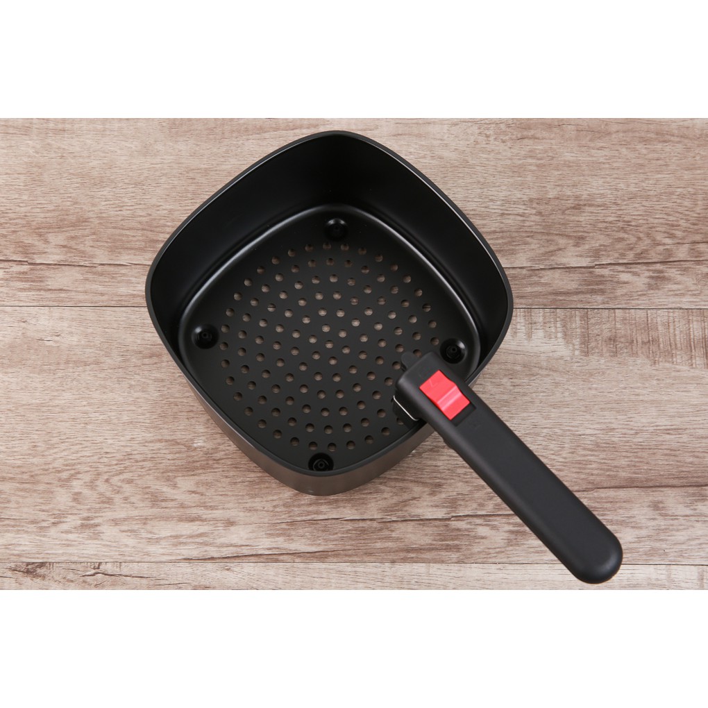 Trong quá trình nấu nướng, hoàn toàn có thể rút khay thực phâm ra kiểm tra xem thực phẩm đã chín tới hay chín giòn theo ý của mình. Khi rút khay thực phẩm, nồi chiên không dầu tự động ngắt điện. An toàn và yên tâm tuyệt đối.
