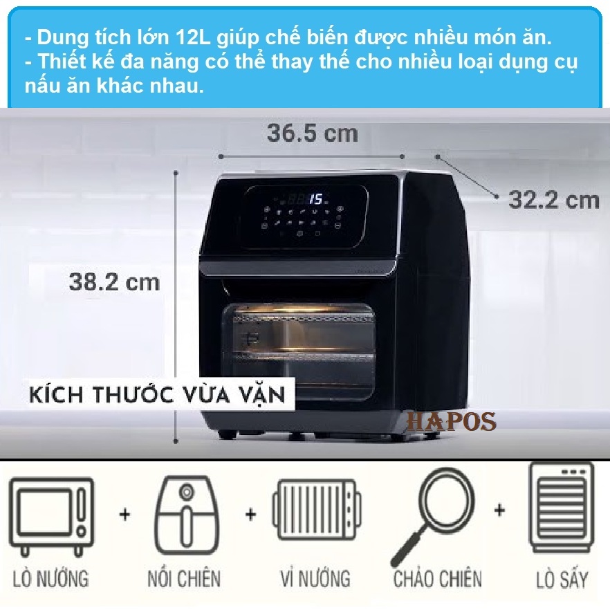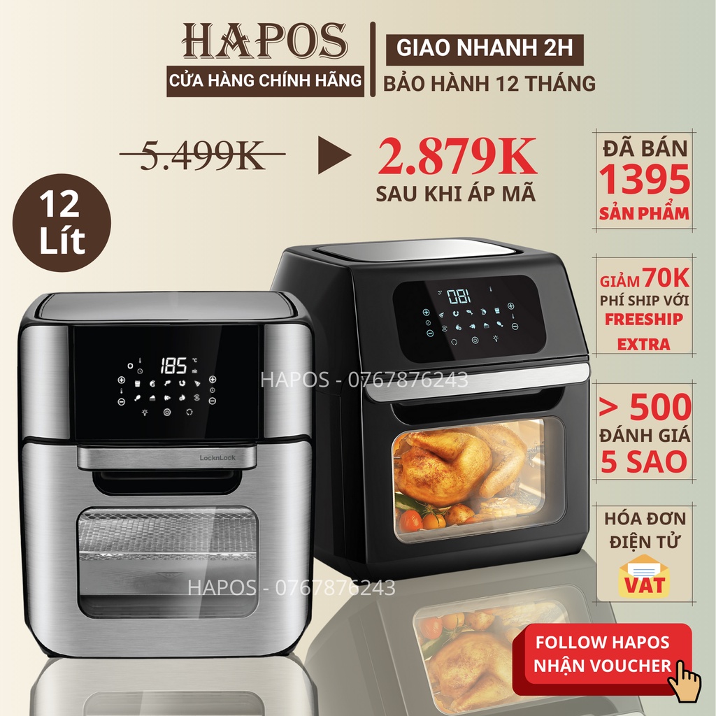 Nồi chiên không dầu Lock&Lock 12 lít kết hợp lò nướng bánh mì, thịt, cá an toàn điện đa năng chính hãng - HAPOS