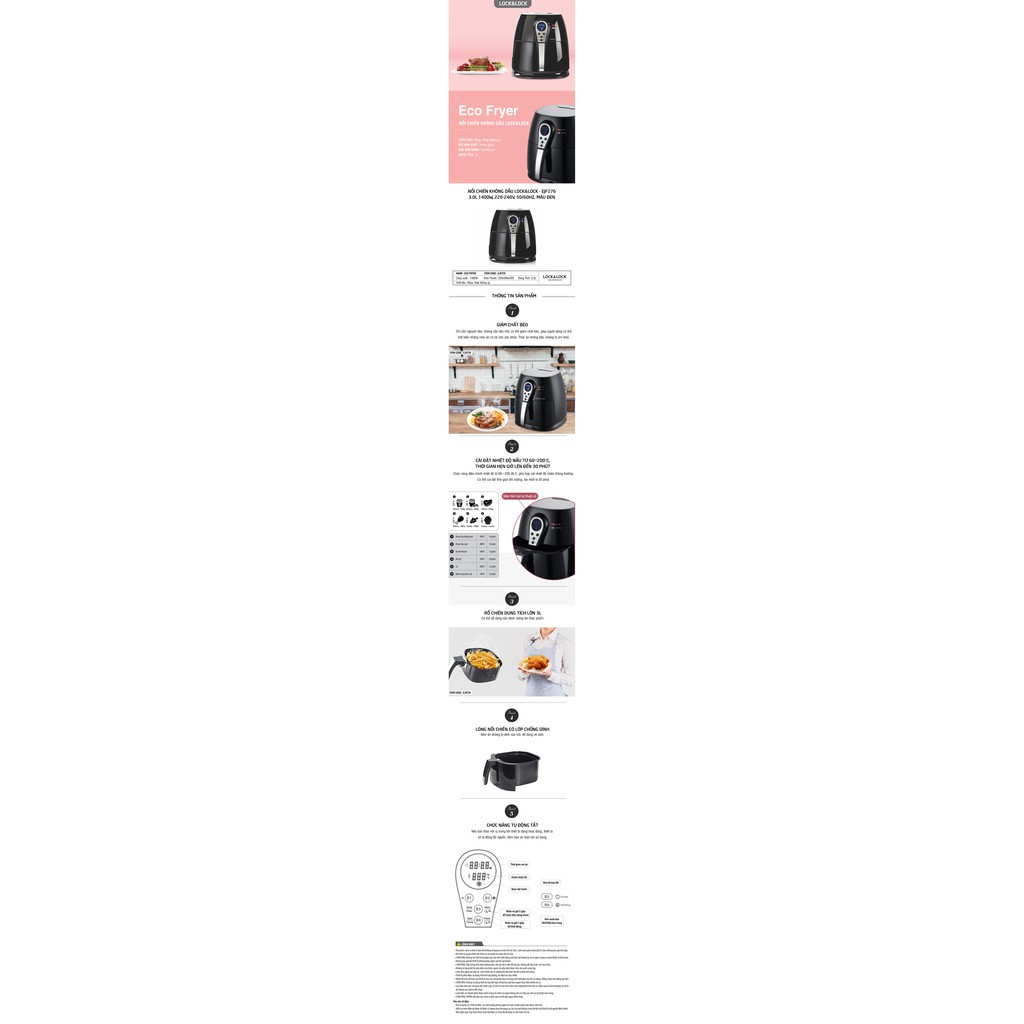 Nồi chiên không dầu Lock&Lock 3.0L, 1400W, 220-240V, 50/60Hz, Màu đen EJF2761. Giảm chất béo