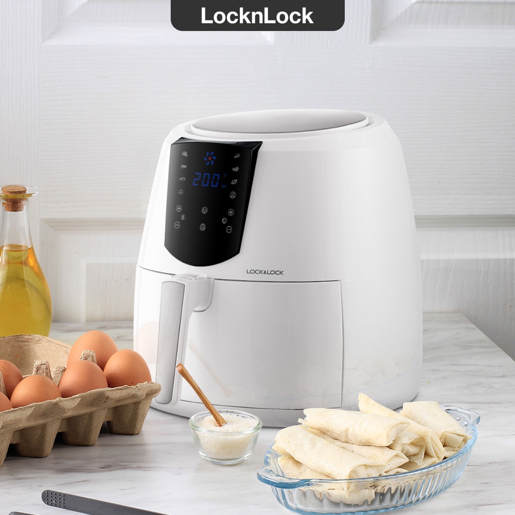 Thiết Bị Điện Gia Dụng > Đồ gia dụng nhà bếp > Nồi chiên ngập dầu || Nồi Chiên Không Dầu Lock&Lock Jumbo Plus Air Fryer 5.2L Màu trắng EJF357WHTCòn hàng