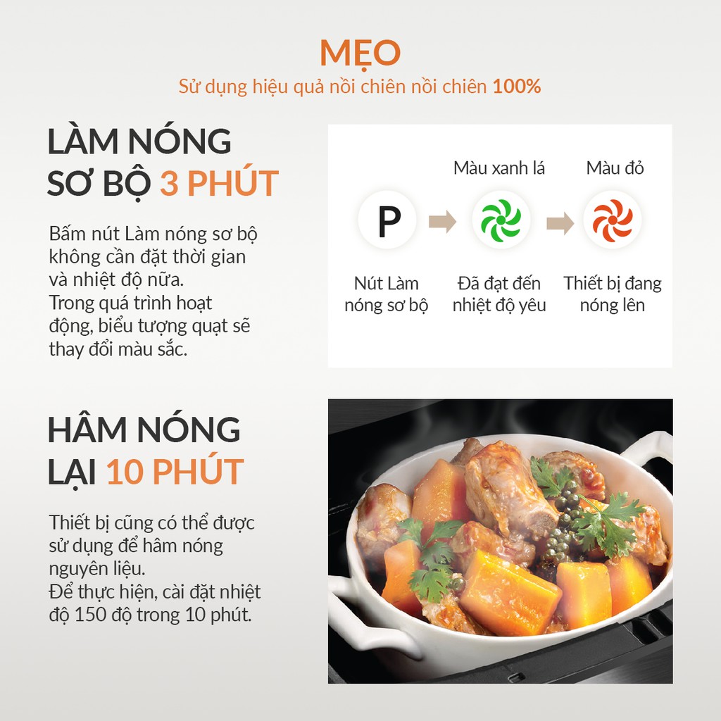 Nấu thức ăn nhanh và chín đều với ít hoặc không cần dầu