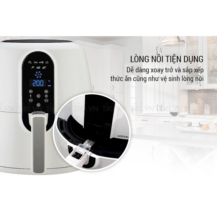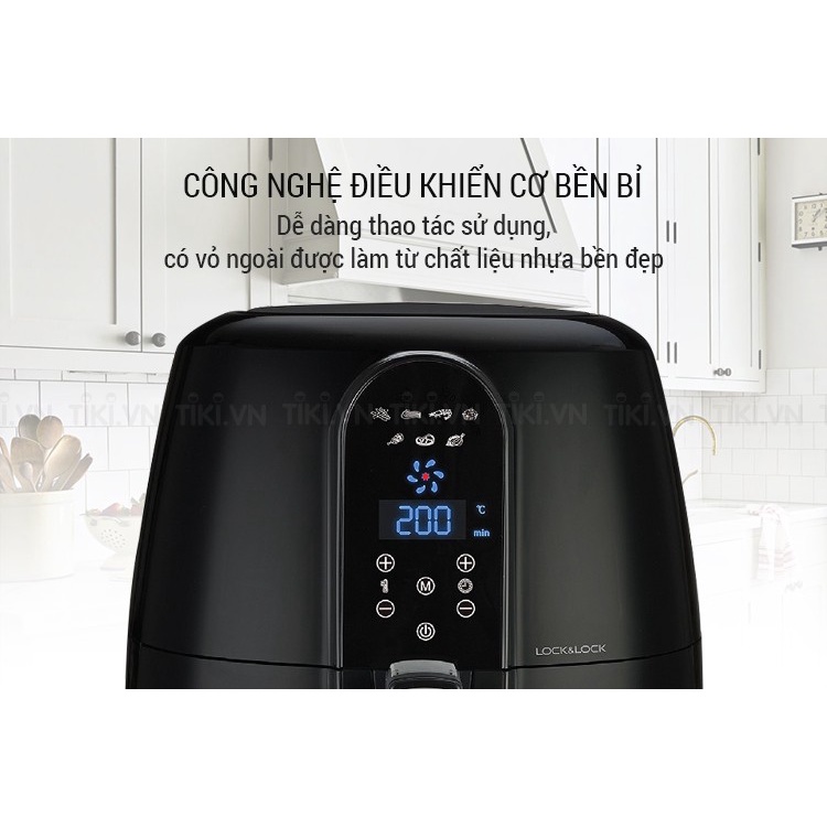 - Có thể mặc định thời gian khi nướng, lâu nhất là 60 phút. Nồi chiên không dầu Lock&Lock tự động tắt khi đạt đến nhiệt độ chỉ định, bảo vệ quá nhiệt.