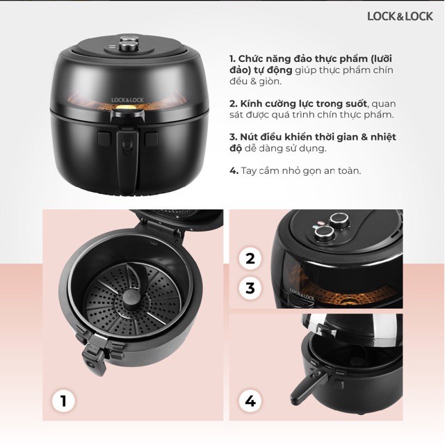 Giới thiệu [Mã ELHADEV giảm 4% đơn 300K] Nồi Chiên Không Dầu Lock&Lock EJF586BLK 6.5L