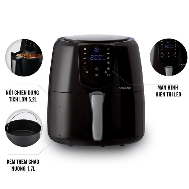 Nồi Chiên Không Dầu Lock&Lock Jumbo Plus Air Fryer EJF357BLK/ EJF296BLK - Hàng chính hãng