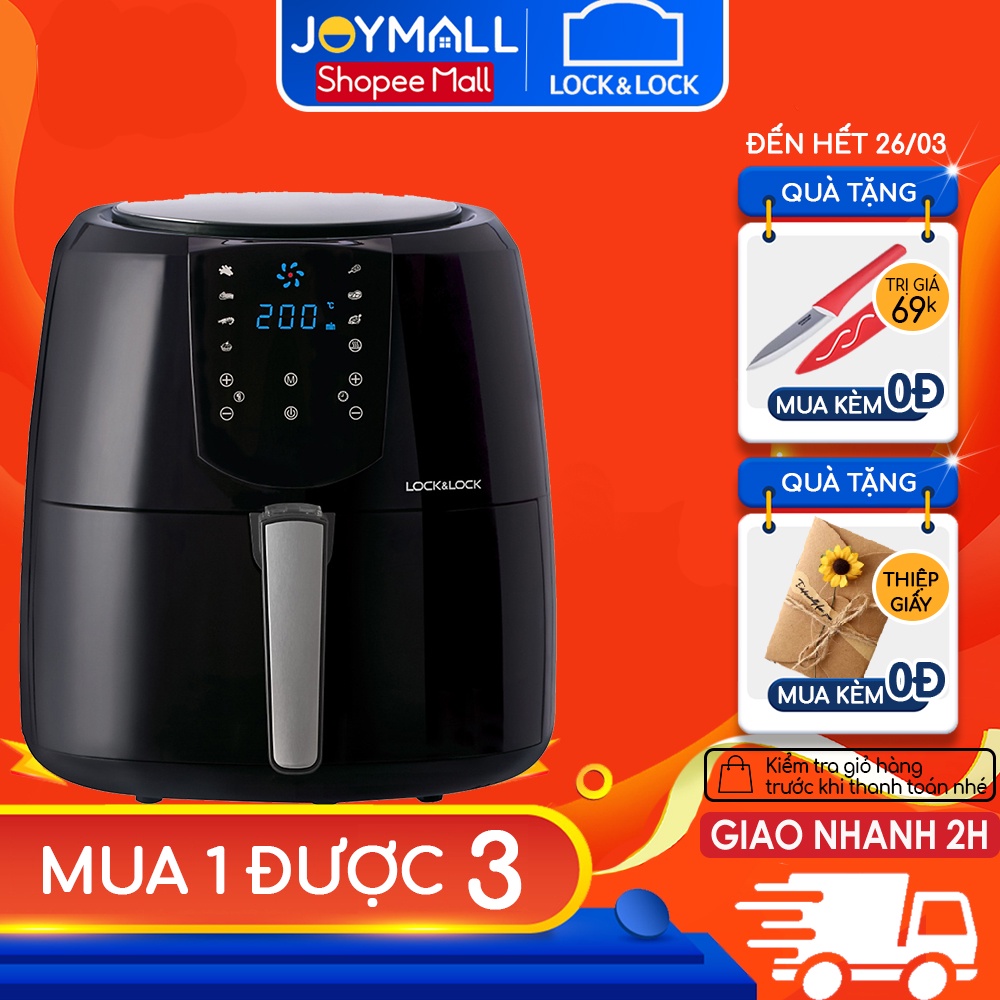 Thiết Bị Điện Gia Dụng > Đồ gia dụng nhà bếp > Nồi chiên không dầu || Nồi Chiên Không Dầu Lock&Lock Điện Tử EJF357 5.2 Lít - Hàng Chính Hãng, Tặng Kèm Chảo Nướng 1,7L - JoyMallCòn hàng