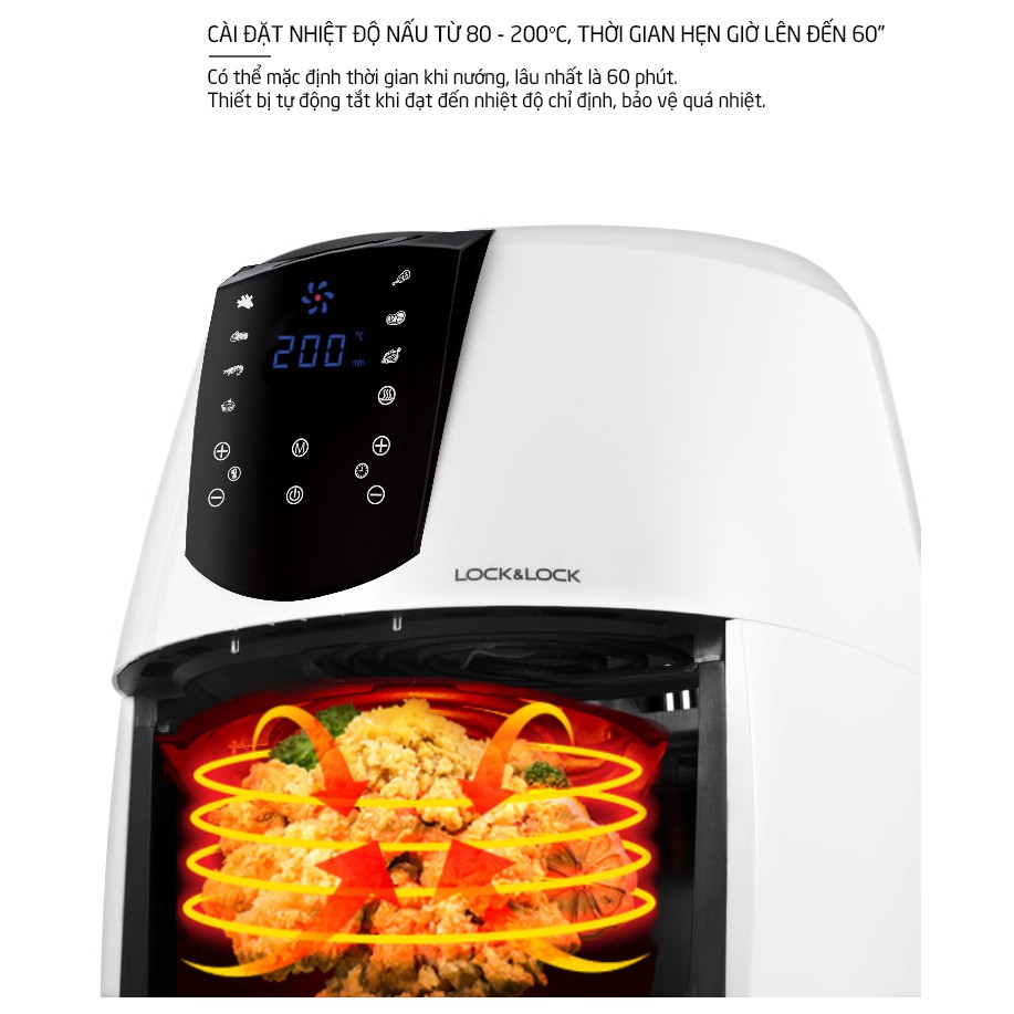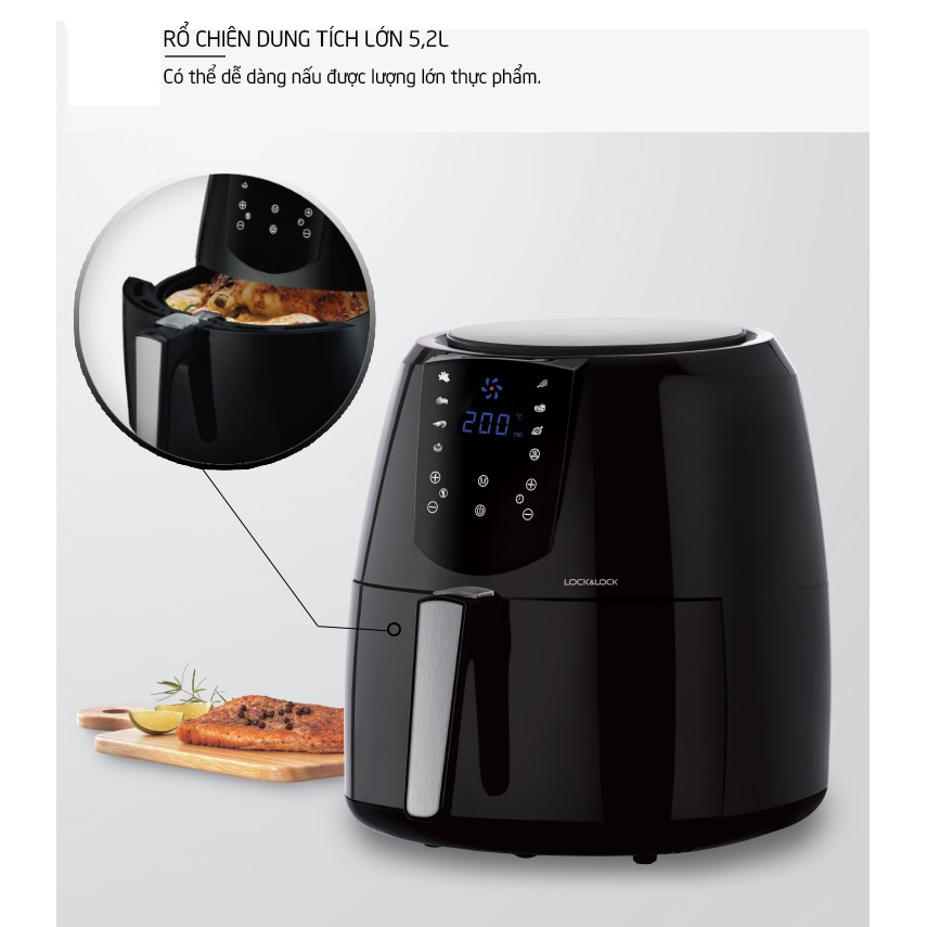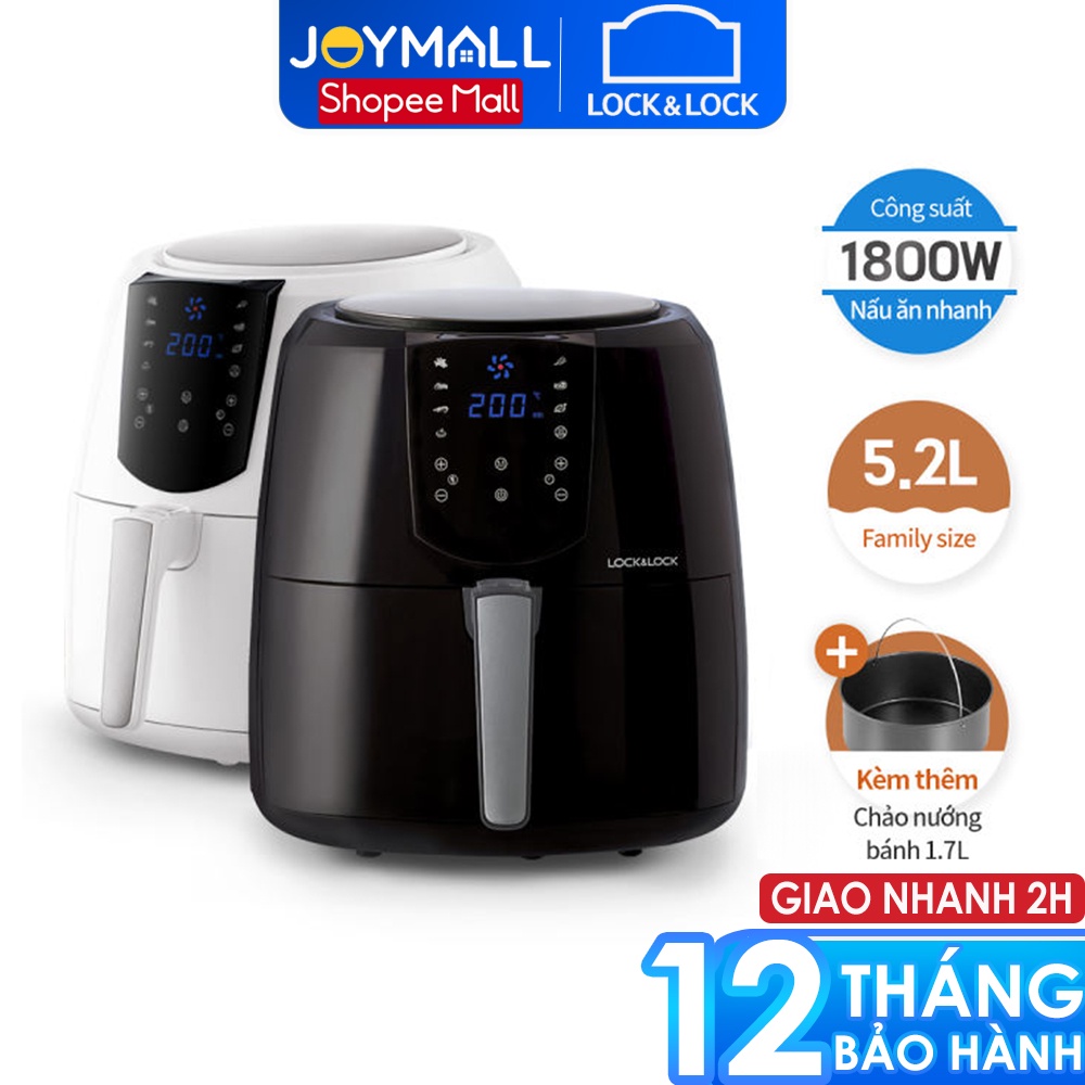Nồi Chiên Không Dầu Điện Tử Lock&Lock EJF357 5.2 Lít - Hàng Chính Hãng, Tặng Kèm Chảo Nướng 1,7L - JoyMall-----------------------------------------------------
