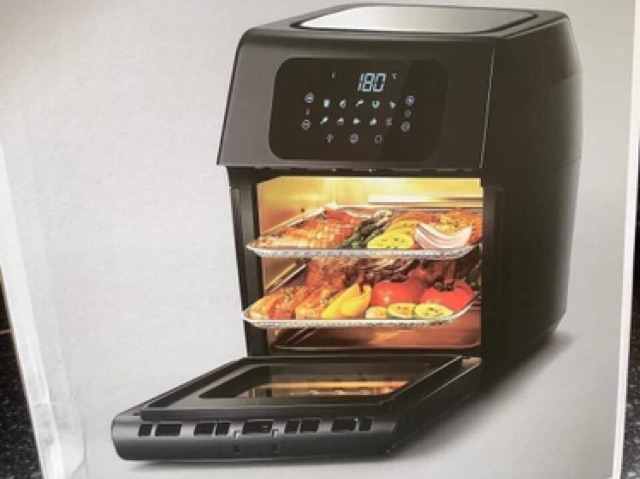 Sản phẩm là sự tổng hợp của nhiều thiết bị và dụng cụ nấu nướng, với bộ hẹn giờ kỹ thuật số được tích hợp chế độ tự động tắtLÒ NƯỚNG + NỒI CHIÊN + VỈ NƯỚNG + CHẢO CHIÊN + LÒ SẤY