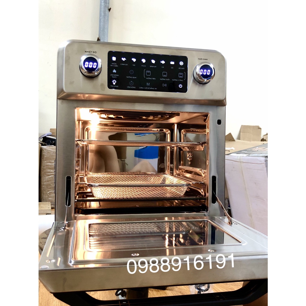 ✅ Thiết kế tinh tế với màn hình cảm ứng LCD với 10 chức năng hoàn hảo: Khoai tây chiên, nương gà, nướng bò, nướng bánh, nướng tôm, sấy hoa quả, nướng xiên quay, đảo nhiệt đối lưu, nướng cá.