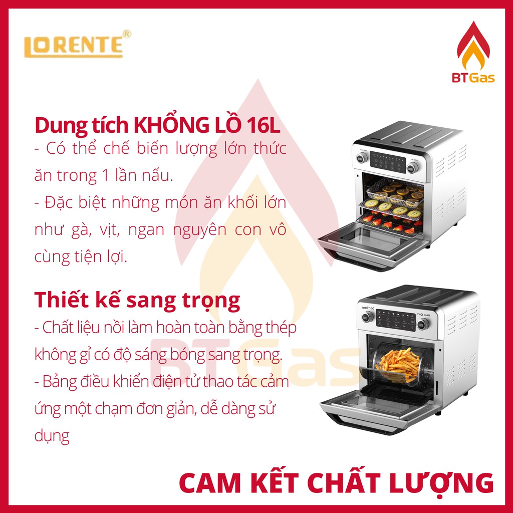 Nồi chiên không dầu Lorente, nồi chiên không dầu điện tử dung tích lớn 16L Lorente LT-1600 / LT-1500Đặc điểm của nồi chiên không dầu cao cấp Lorente LT-1600 / LT-1500