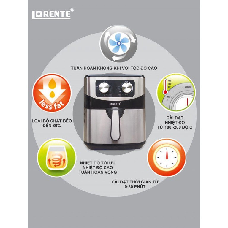 NỒI CHIÊN KHÔNG DẦU ⚡ LORENTE CHÍNH HÃNG 8 LÍT LT-1619