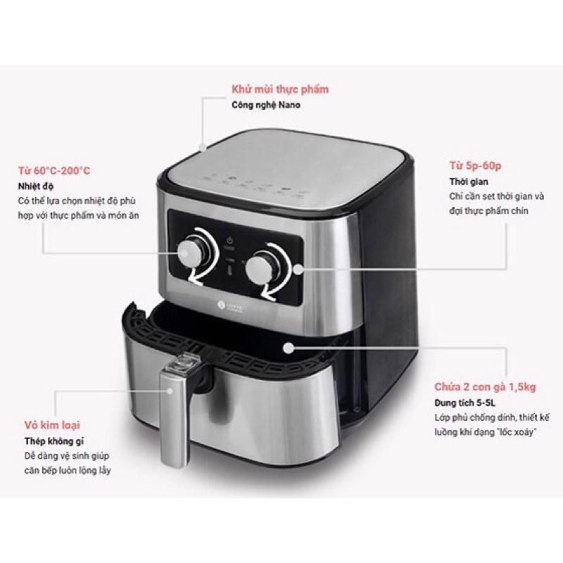 ❤ NỒI CHIÊN KHÔNG DẦU LOTTE LTS - AF5SM DUNG TÍCH 5,5L_THƯƠNG HIỆU SỐ 1 HÀN QUỐC——————————————————————