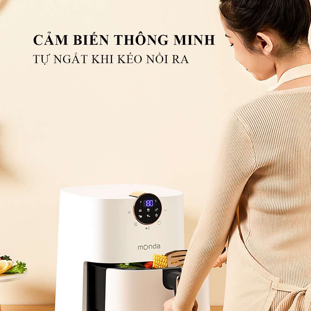 Nồi Chiên Không Dầu MONDA sở hữu thiết kế độc đáo, nhỏ gọn, kết hợp tông trắng đen tinh tế mang đến sự sang trọng cho không gian sử dụng.