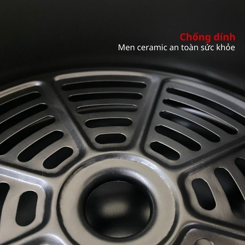 - Lồng nồi chiên và khay chiên đều được phủ một lớp chống dính cao cấp, ngăn chặn tình trạng cháy khét, bám dính thực phẩm. Khay chiên và rá chiên có thể tháo rời ra và vệ sinh, lau chùi một cách dễ dàng.