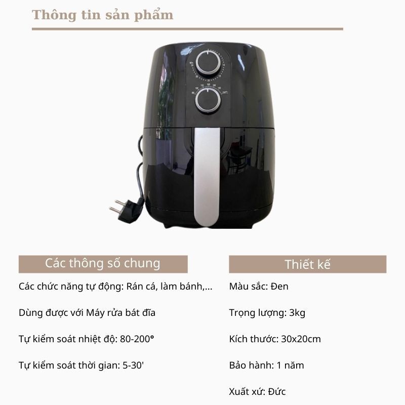 Nồi chiên không dầu Mini Druella dung tích 3L bảo hành 1 năm