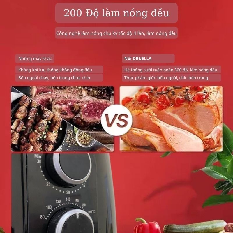 Nồi chiên không dầu DRUELLA dung tích 3L✅ Setup 8 chức năng chuyên sâu: Chiên khoai tây, Tôm, Thịt, Gà, Cá, Bít tết, Phô mai, Thịt,