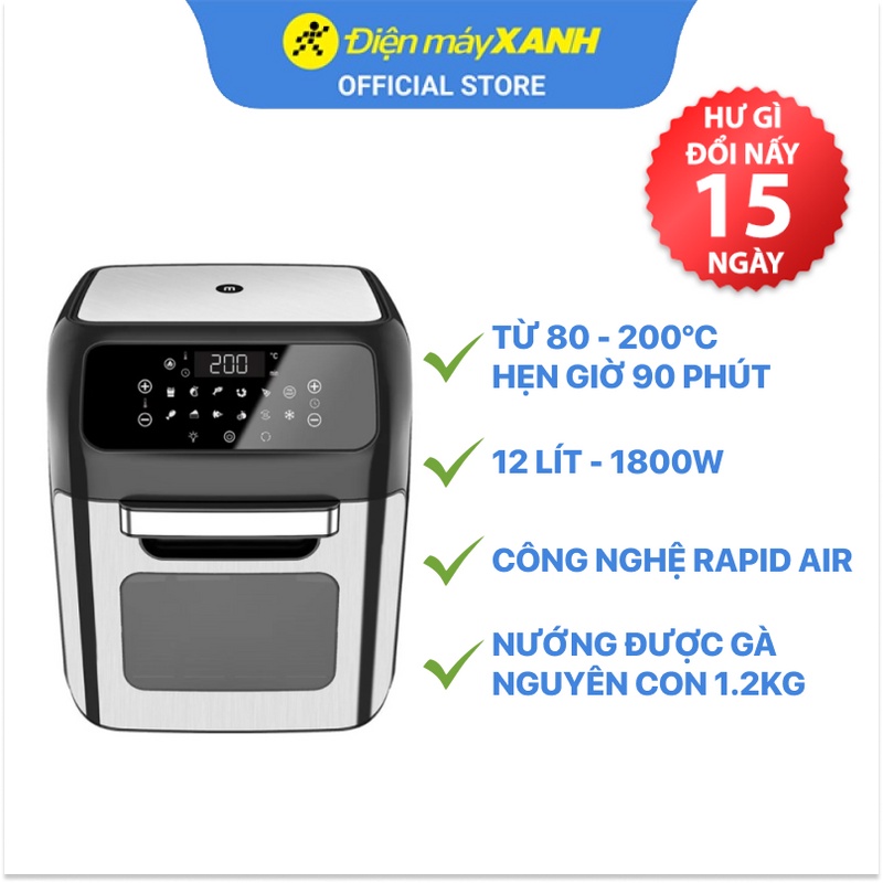 Giới thiệu [Mã ELHADEV giảm 4% đơn 300K] Nồi chiên không dầu Mishio MK-281 12 lít công suất 1800W - Hàng chính hãng BH 18 tháng