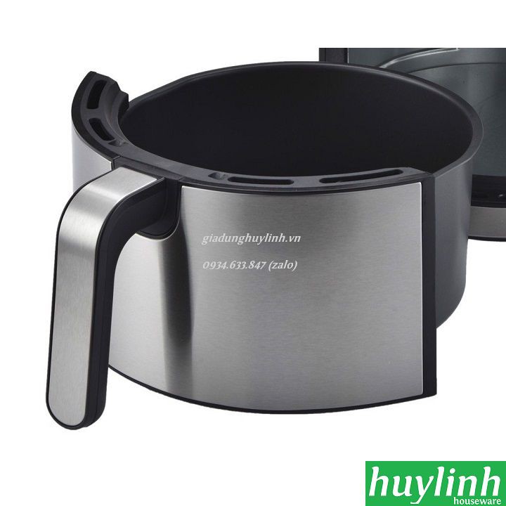- Khay nồi chiên có tay cầm chống nóng, tiện lợi và an tâm sử dụng, bên trong khay nồi chiên có vỉ chiên giúp loại bỏ thêm lượng mỡ thừa bám trên thực phẩm và đồ ăn không bị dính, cháy khét. Vỉ chiên có thể tháo rời để vệ sinh thuận tiện.